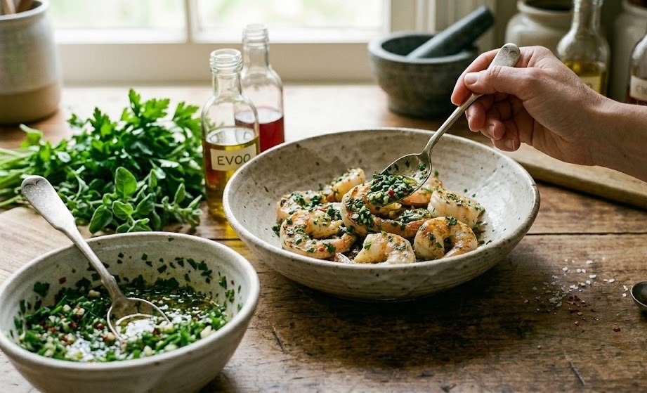 The beauty of this recipe lies in the balance of flavors. The shrimp are lightly seasoned and cooked just until tender, while the chimichurri sauce adds brightness, acidity, and depth.