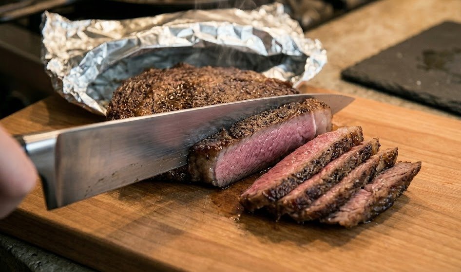 Remove the steak from heat and let it rest for 10–15 minutes. This step ensures the juices redistribute throughout the meat.