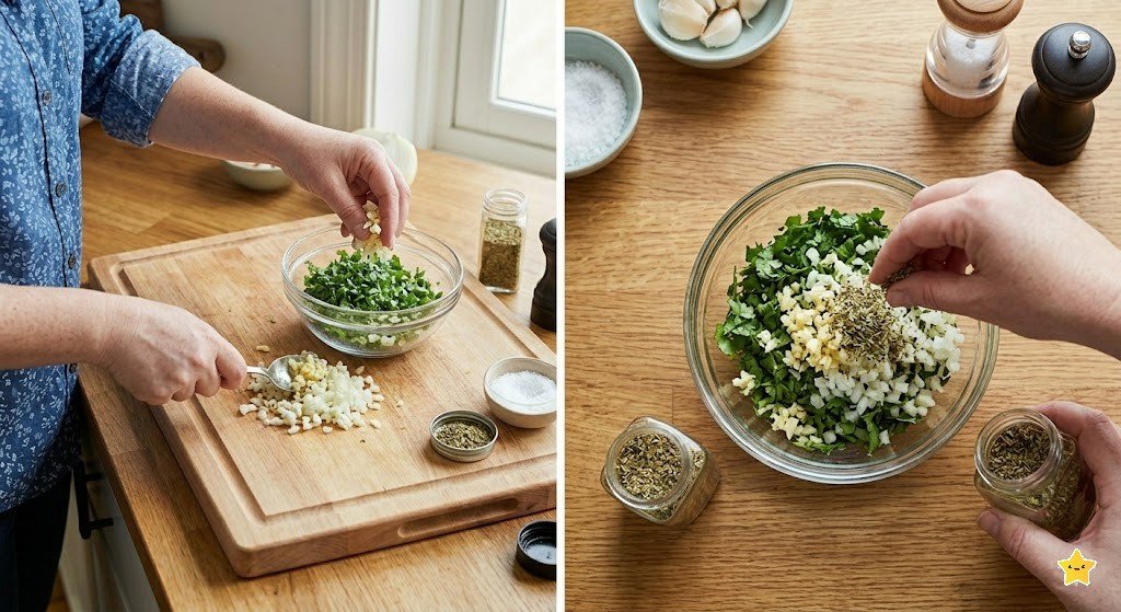 - Mince the garlic and onion into very small pieces for even flavor distribution.